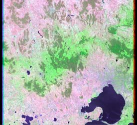 Landsat scenes cover an area of land 183 km wide by 170 km long. The full screen images shown here are 825x750 pixel low resolution preview images. Full resolution Landsat images contain much more detail. Web Link: ACRES |