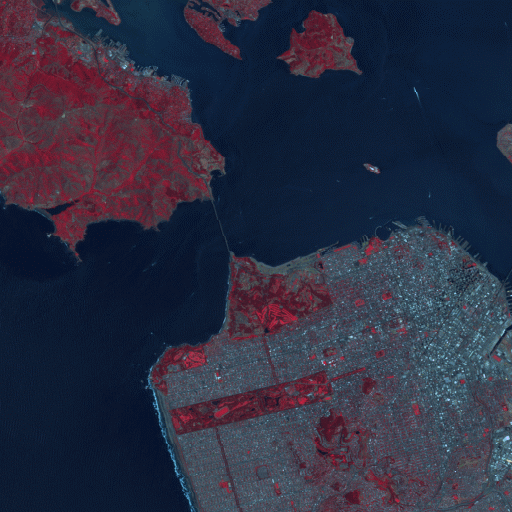 Following is a portion of a radiometrically corrected Landsat-7 scene over San Francisco, California, using bands 4, 3, and 2.