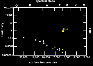 White DwarfsAs they exhaust their nuclear fuel, Red Giant stars disperse much of their outer layer material into surrounding space as planetary nebulae. They are eventually reduced to extremely dense, spent stellar cores - White Dwarfs. Tremendous gravitational compression forces produce very high initial temperatures. They cool by radiation emission for the rest of time.The Sun will finish its days as a White Dwarf. [1] - [2] - [3] - [4] - [5] - [6] |