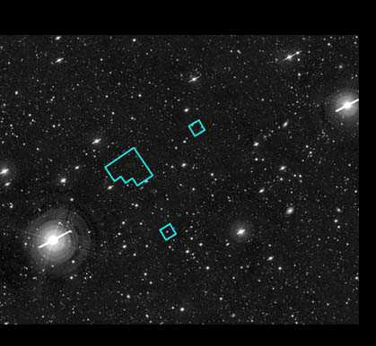 The three fields imaged as part of the HDF South project are shown. Click on the image to show the field labels. |
